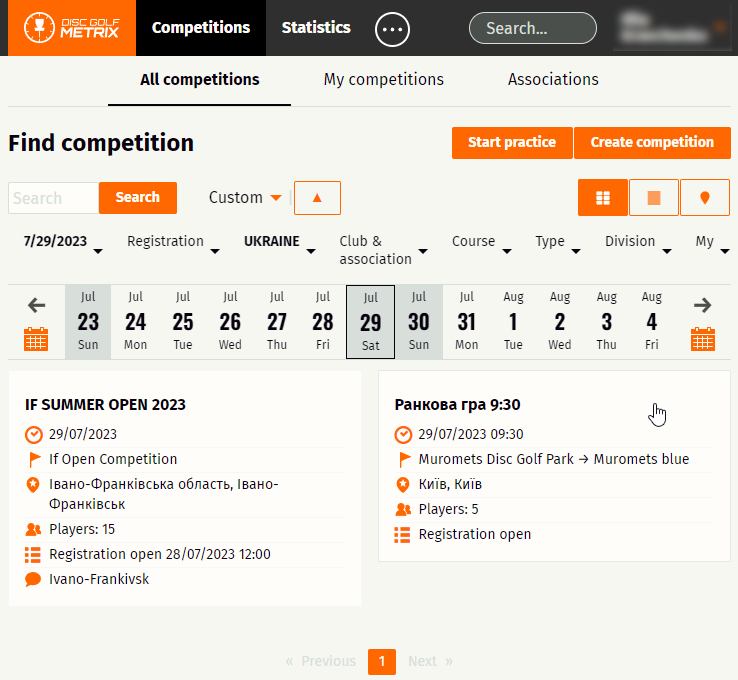 Ви можете вести власну статистику гри на discgolfmetrix.com, що дозволить вам слідкувати за вашим прогресом і вдосконалювати ваші навички. Реєструйтеся, створюйте тренувальні раунди, та приймайте участь у іграх створених іншими гравцями. Заходьте в розділ пошуку змагань.